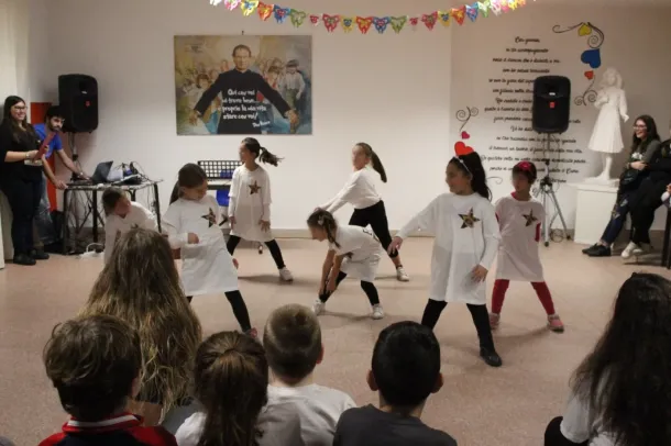 In onore della visita dell'ispettrice delle Figlie di Maria Ausiliatrice, Suor Mara Tagliaferri, è stato organizzato uno spettacolo in cui si sono susseguite diverse esibizioni: quella teatrale, molto significativa, che ha visto in scena l'interpretazione dei giovanissimi che frequentano il laboratorio invernale; due coreografie di danza, rispettivamente svolte dalle bambine frequentanti la prima e la seconda elementare, e da coloro che frequentano la terza, la quarta e la quinta elementare. In seguito abbiamo avuto il piacere di avere tra noi il nostro simpaticissimo Clown "Lo" accompagnato dalla sua allegra compagnia. Lo spettacolo si è concluso con un grande 'grazie' rivolto a Suor Mara dal profondo dei cuori di ciascuno dei membri di questa grande famiglia oratoriana.